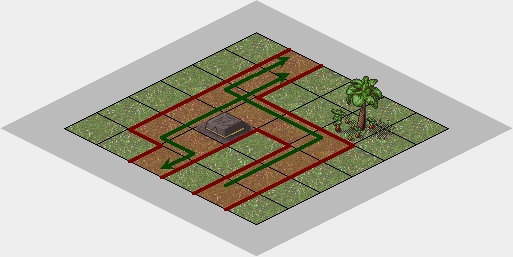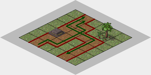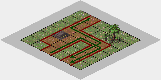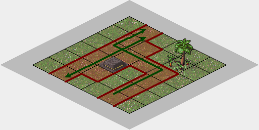 Figures 9 and 10 - A north-west heading train The included dream uses reversing switches, as it allows the furre to control the direction of the train such that it can be operated in a loop. This illustrates the basic principle around several dream concepts, including mazes, where the furre must throw the correct combination of switches while traveling on the train. | |||